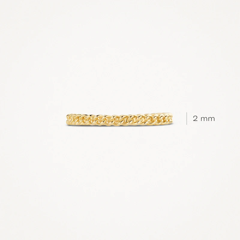 Deze ring van 14k geelgoud heeft een subtiel schakelmotief. Een prachtig cadeau voor een bijzondere gelegenheid. De band heeft een doorsnede van 2 mm. Combineert ook mooi met andere sieraden uit onze collectie.