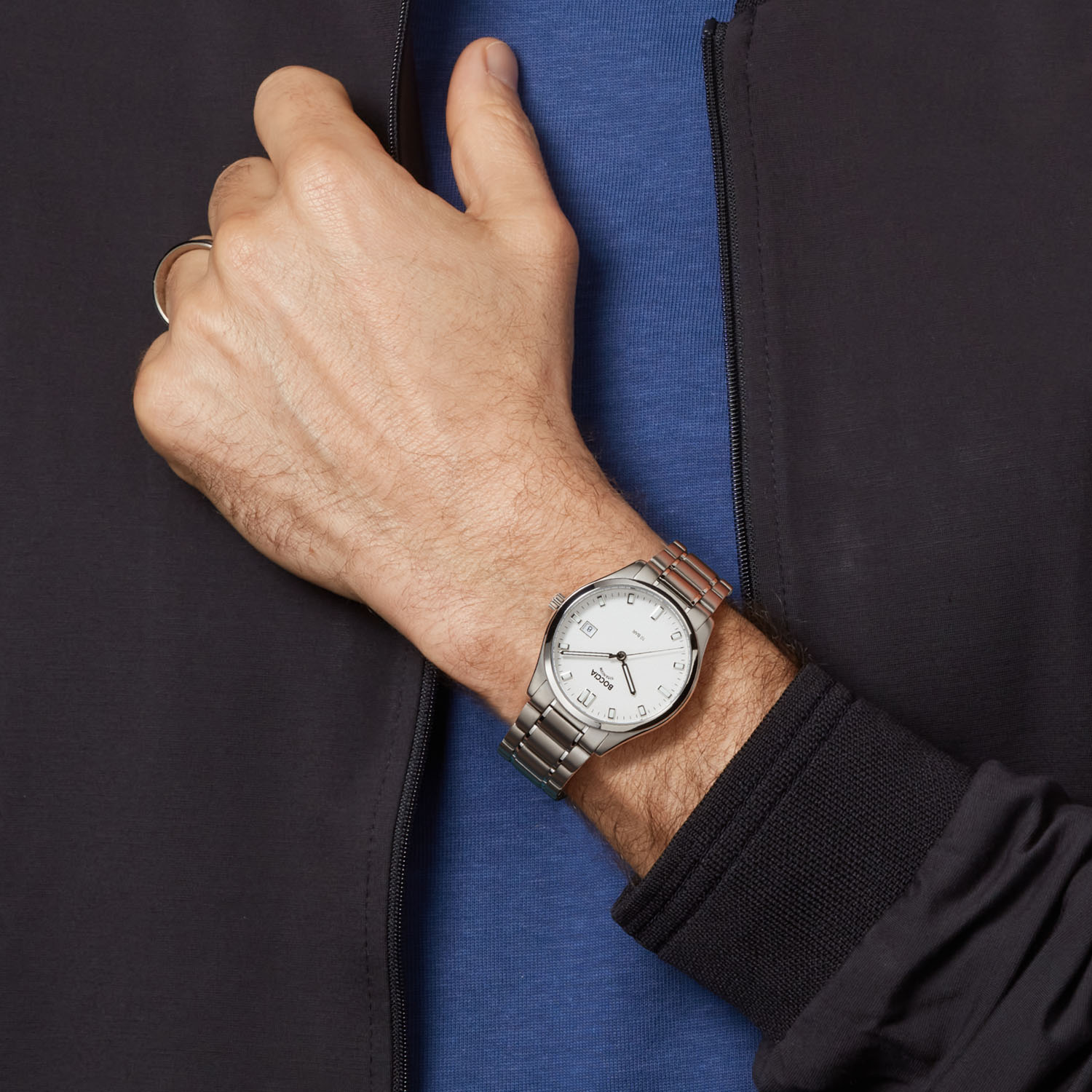 Dit herenhorloge van Boccia heeft een nette uitstraling. De 3669-03 heeft een ronde titanium horlogekast met een witte wijzerplaat met datum en duidelijke uursaanduiding. Aan de titanium kast zit een titanium schakelband met een vouwsluiting. Het horloge heeft een doorsnee van 39mm, een mineraalglas en is 10ATM. Of je nu klassiek of chique gekleed gaat, dit horloge past bij elke outfit en iedere gelegenheid!