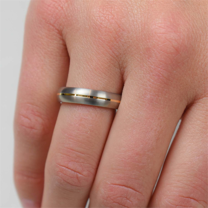 Deze gematteerde bicolor ring van Boccia Titanium heeft een glanzend en goudkleurig accent. De ring is 5mm breed.