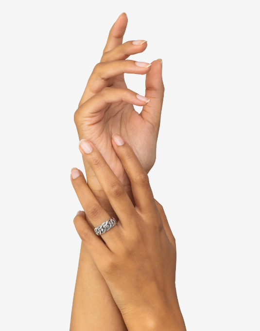 Onze Nathalie Small Textuur Ring heeft een uniek ontwerp. Het prachtige ontwerp van de Nathalie schakel loopt door de hele ring, inclusief het middenstuk, waardoor er een krachtig geheel ontstaat. Combineer deze krachtige ring met de bijpassende Small of XS-armband om een waanzinnige look te creëren. Deze ring voegt een opvallende uitstraling toe aan onze bekende Nathalie schakel.