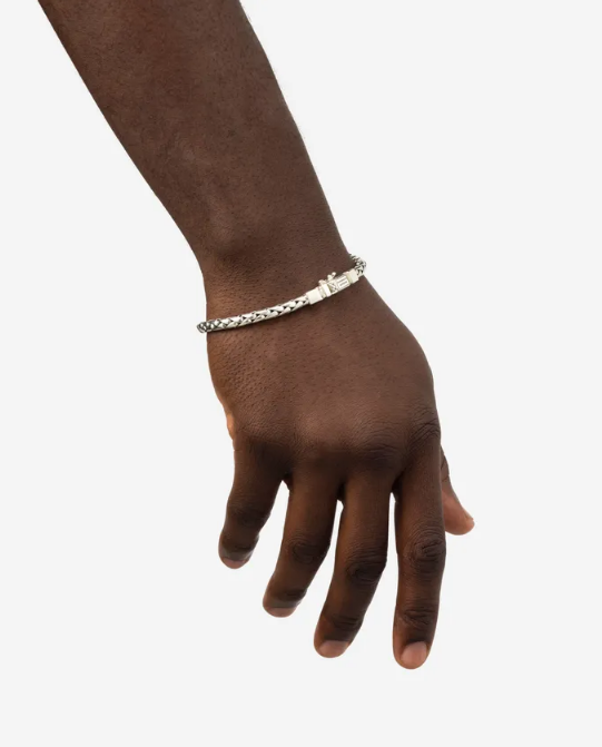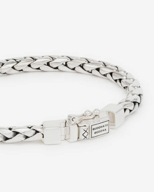 De George XS-armband is extra fijn en prachtig gedetailleerd. Deze zilveren armband ziet er fantastisch uit om ieders pols. De smalle gevlochten armband heeft een verfijnde textuur en geeft je een sierlijke look! De handgemaakte armband kan perfect worden gecombineerd met andere Buddha to Buddha-sieraden, bijvoorbeeld de familie Katja of Edwin.