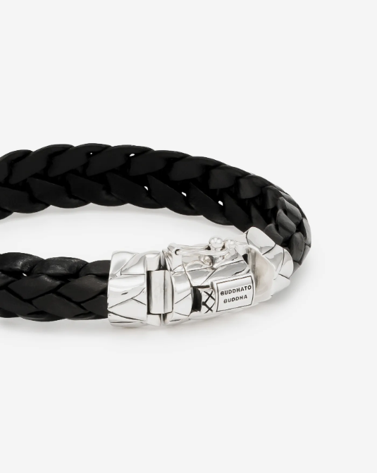 De Mangky leren armband, geïnspireerd door onze toonaangevende leervlechter Komang in Bali, combineert vakkundig geweven leer met een zilveren sluiting, ontworpen door ons team in Amsterdam. Met hoogwaardig leer met de hand gemaakt, is deze armband iets groter dan zijn tegenhanger, de Mangky small leren armband. Welk verhaal ga jij vertellen met deze armband?