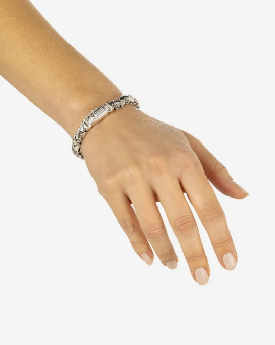 De George Texture armband, een icoon uit de geliefde George collectie, voegt een innovatieve twist toe aan de vertrouwde George-schakel door zijn unieke structuur. Dit veelzijdige item is perfect te combineren en past bij iedereen. Vervaardigd uit gerecycled zilver straalt het een premium uitstraling uit. Ontworpen in Amsterdam en met zorg geproduceerd in Zuidoost-Azië, belichaamt deze armband vakmanschap en stijl. Bij Buddha to Buddha koop je geen sieraden, maar geef je ze cadeau. Aan wie zou jij dit sieraad cadeau willen geven? Jezelf, of iemand in het bijzonder?