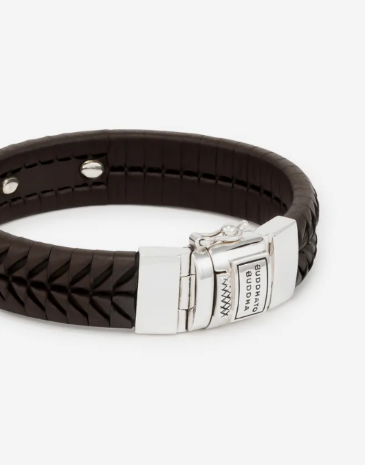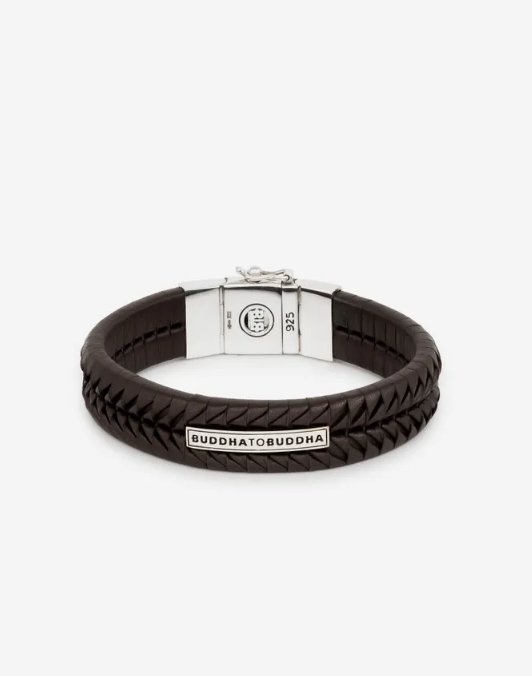 Een armband met ambachtelijke finesse, de Komang, vernoemd naar onze gewaardeerde Balinese meester in leerweven. Deze bruine leren armband straalt prachtige symmetrie uit met zorgvuldig vervaardigde details en een gerecycled zilveren sluiting. Met de hand gemaakt en tijdloos zoals alle Buddha to Buddha-sieraden.. Ontworpen in Amsterdam en met liefde vervaardigd in Zuidoost-Azië. Ga jij het leven vieren met deze armband?