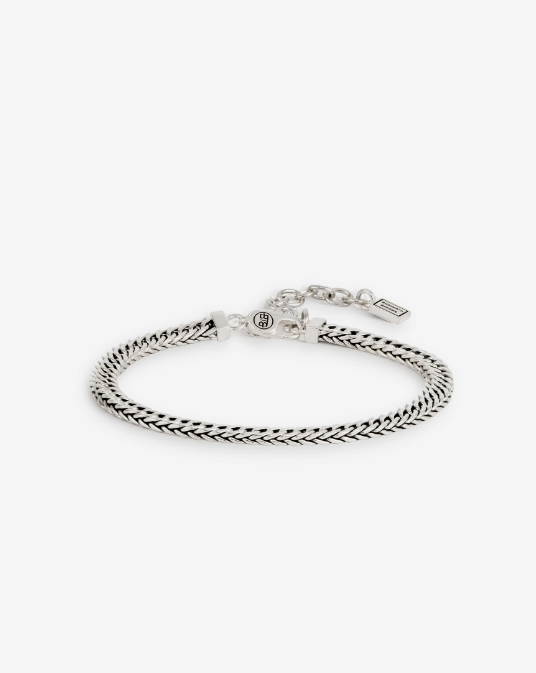 Ervaar de kracht van het Esther Mini enkelbandje. Handgemaakt met puur vakmanschap, is elke schakel in elkaar gewoven, met onze iconische Esther weeftechniek, om een stoere look te creëren. De donkere elementen in het 925 zilver, geven de Esther-collectie haar signature touch. Dit enkelbandje is verkrijgbaar in drie verstelbare maten, waardoor een comfortabele en perfecte pasvorm wordt gegarandeerd. Dankzij de verstelbare lengtes kun je het item als armband of enkelbandje dragen. Verstelbare lengte: S: 18-22 cm M: 21-25 cm L: 24-29 cm