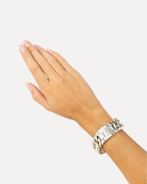 De Chain Big armband is een van onze populairste items uit onze Chain collectie, en een opvallende creatie. Deze grootste armband in zijn collectie kenmerkt zich door unieke schakels. We hebben de wereldwijd bekende gourmet schakel, omgetoverd tot een stijlvolle en opmerkelijke Buddha to Buddha creatie. Deze tijdloze armband, met de hand gemaakt van gerecycled zilver, kan naadloos worden gecombineerd met andere sieraden uit de Chain collectie. Deze schakel staat symbool voor connectie. Met wie verbind jij je door het dragen van deze armband? Laat jouw verhaal zich verweven met dit unieke sieraad.