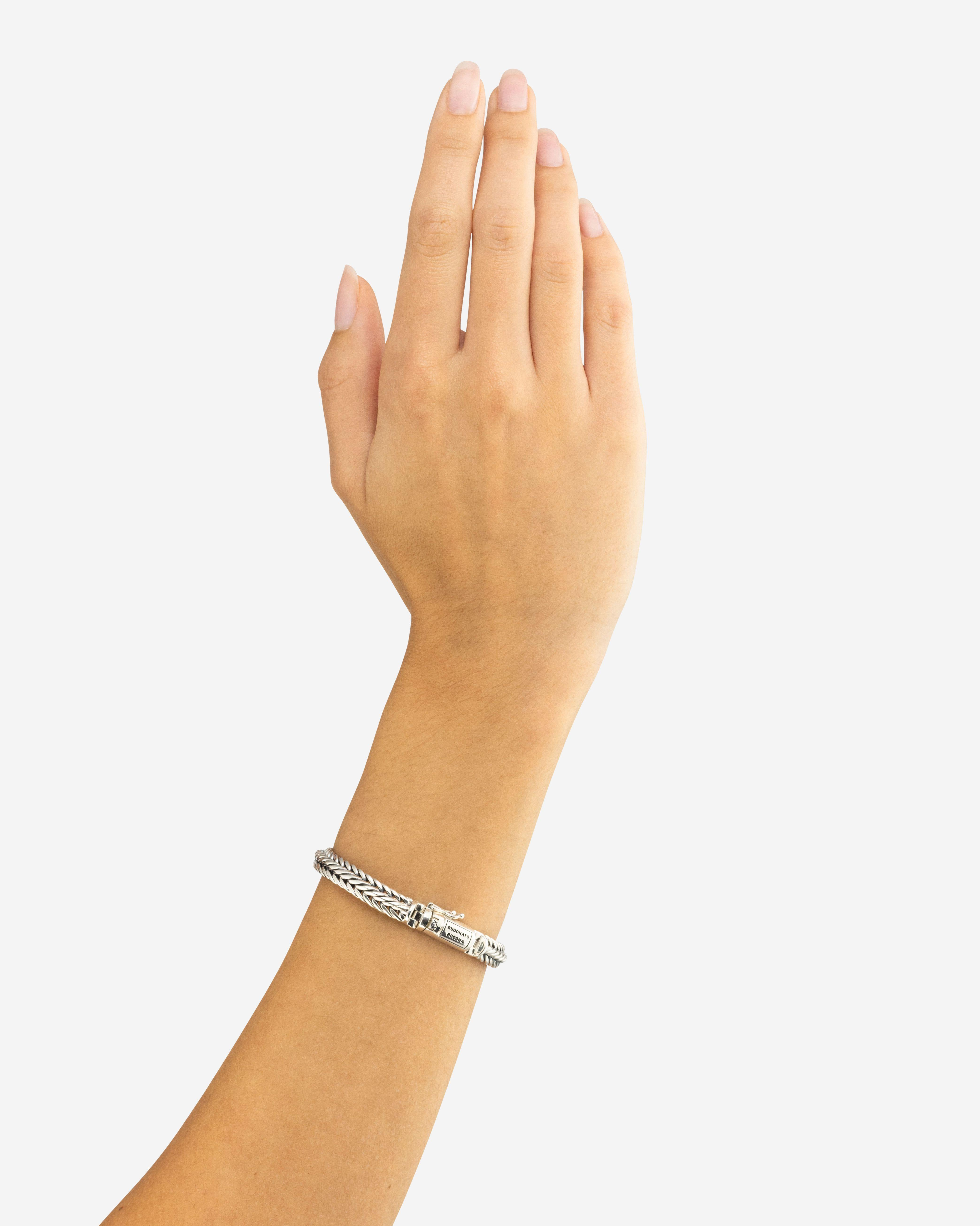 De Nurul XS Armband is een ode aan verfijning en gedetailleerd vakmanschap. Deze sierlijke armband, met zijn unieke en ingewikkelde schakeldesign, is een subtiele weerspiegeling van de schoonheid in complexiteit. Elk schakel vertelt een verhaal van toewijding, precisie en de kunst van het handwerk. Gemaakt uit gerecycled zilver, is de Nurul XS niet alleen een sieraad, maar ook een statement van duurzaamheid en kwaliteit. Ontworpen in het hart van Amsterdam en met liefde handgemaakt in Zuid-Oost Azië. Ethiek en esthetiek smelten samen in dit product. Handgemaakt met duurzame materialen om een leven lang mee te gaan.