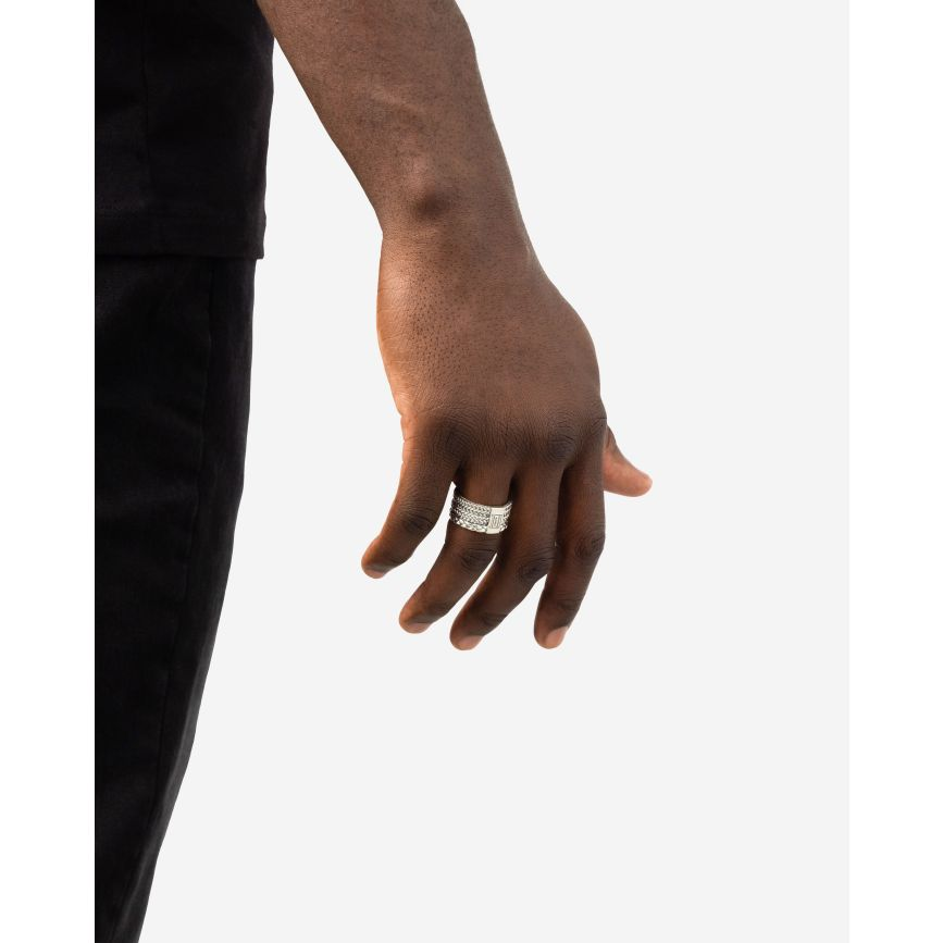 De Triple Mini Ring is een meesterwerk van samensmelting en stijl. Deze ring brengt de geliefde schakels van Barbara, Ellen en George samen in één harmonieus ontwerp. Elk detail is zorgvuldig vervaardigd uit gerecycled zilver, wat getuigt van onze toewijding aan kwaliteit en traditie. Ontworpen in Amsterdam en met passie handgemaakt in Zuidoost-Azië, is de Triple Mini Ring niet alleen een sieraad, maar een verhaal van verbinding. Welk verhaal vertel jij met deze iconische ring?