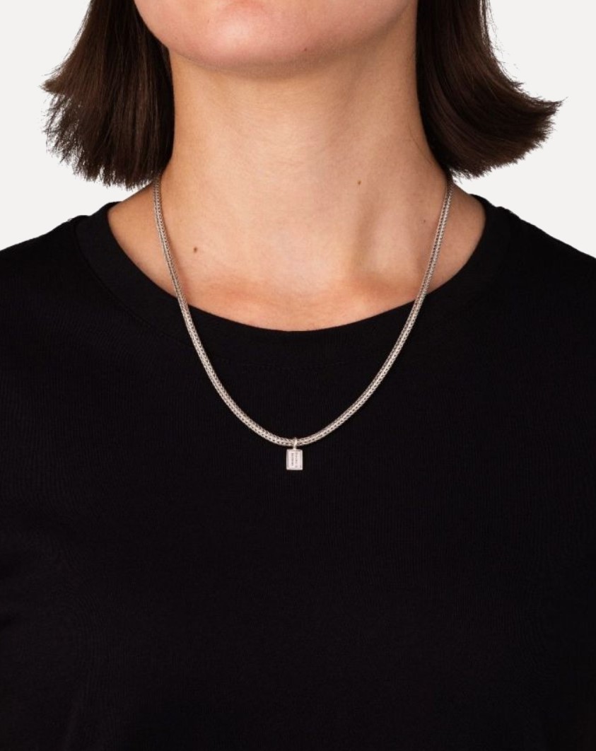 De Ellen Mini Ketting is 50 cm lang en geïnspireerd op onze geliefde Ellen schakel. De iconische Ellen vlechttechniek straalt kracht en elegantie uit. Met passie en precisie vervaardigen onze bekwame zilversmeden deze stijlvolle ketting van duurzaam gerecycled zilver, in Zuidoost-Azië. Verken ook de armbanden, oorbellen en ringen uit de Ellen collectie en ontdek met welke sieraden je deze ketting het beste kunt combineren. Het veelzijdige en verfijnde ontwerp maakt het tot de perfecte accessoire voor iedereen en elke gelegenheid. Ethiek en esthetiek komen samen in dit product, handgemaakt met duurzame materialen om een leven lang mee te gaan.