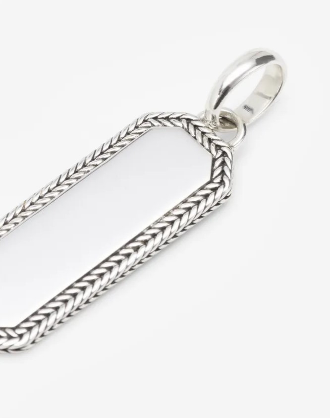 De achthoekige Barbara Octagon Tag Hanger in gerecycled Zilver is een exclusieve aanvulling op je ketting. Met zijn gladde voorkant en subtiele structuur aan de randen biedt deze hanger een persoonlijk canvas voor gravures aan de gladde zijde.