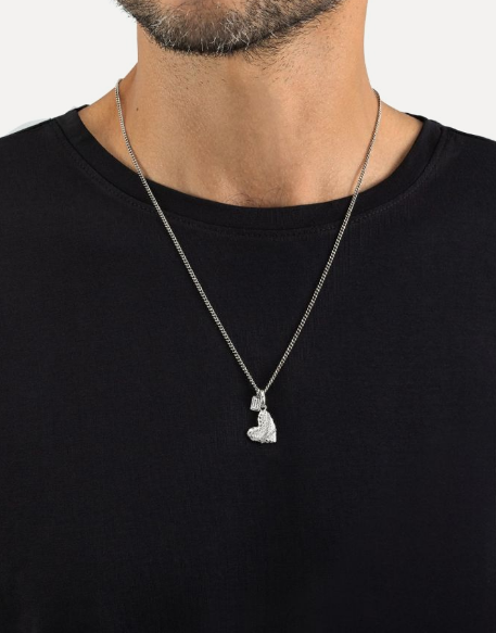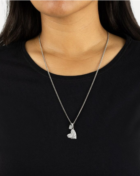 Raak de mensen die op je pad komen, met onze statement Heart Hanger in Zilver. Vier de puurste liefde in haar meest bekende vorm: het hart. Speciaal handgemaakt voor degenen die hun liefde durven uiten, gepresenteerd als een unieke mix van strak minimalisme met een rebels randje. De details van dit sieraad bestaan uit kruisende kettingen, symbool voor de versteviging van een verbinding. Combineer de hanger met een van onze kettingen, of voeg hem toe aan de ketting die je draagt, ter herinnering aan jouw oprechte passie. Gemaakt van gerecycled 925 sterling zilver, ontworpen in Amsterdam en zorgvuldig gemaakt in Zuidoost-Azië. De Heart Pendant is graveerbaar; maak hem nog persoonlijker met een unieke boodschap op de achterkant. Voor wie open jij je hart?