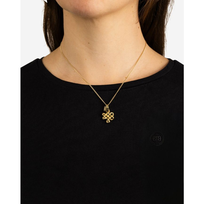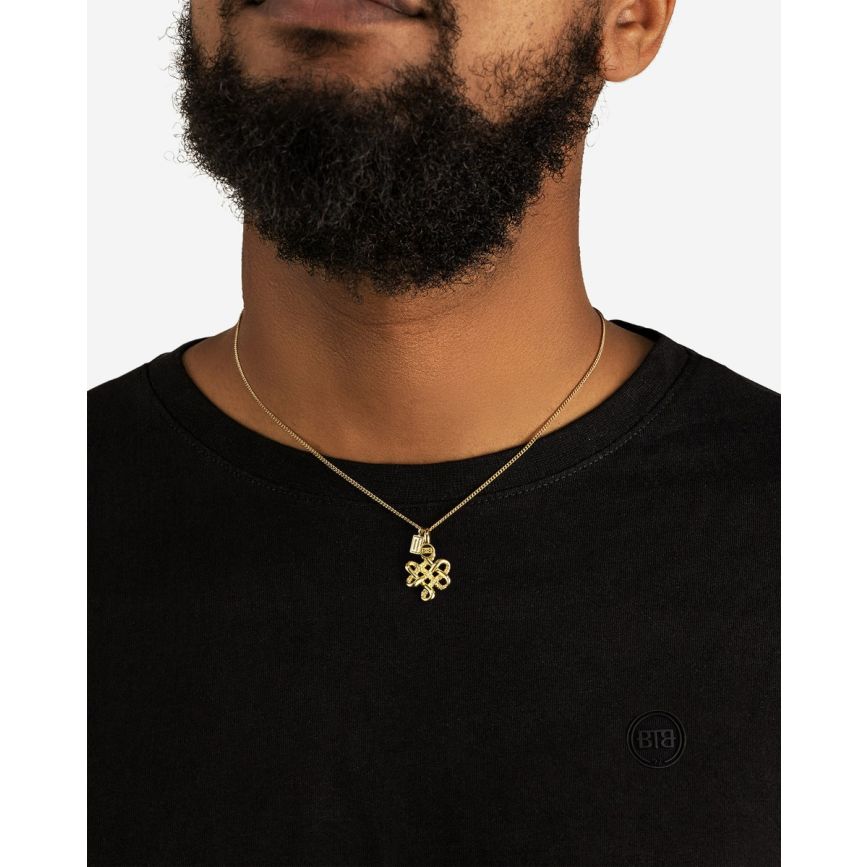 De Endless Knot Hanger XS is een meesterwerk van betekenis en ontwerp. Deze elegante hanger symboliseert een oneindige verbinding. Het tijdloze ontwerp, geïnspireerd door het eeuwenoude symbool van de eindeloze knoop, viert harmonie, continuïteit en oneindigheid. Ontworpen in Amsterdam en handgemaakt in Zuid-Oost Azië van gerecycled zilver met een premium gold plating (3.0 micron dik). De plating is gemiddeld 5 maal dikker dan reguliere gold plated items.