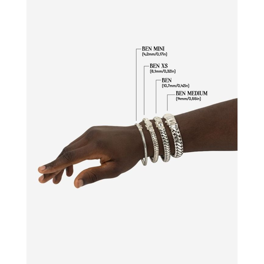 De Ben-schakel behoort tot onze meest iconische ontwerpen. De Ben Mini Armband is een verfijnde, kleinere versie van de geliefde Ben Armband. Ontworpen in Amsterdam en met de hand gemaakt van gerecycled zilver in Zuid-Oost Azië. Draag het als een symbool de bijzondere connecties die je in het leven maakt. Met welke gebeurtenis verbind jij jezelf door dit sieraad te dragen?