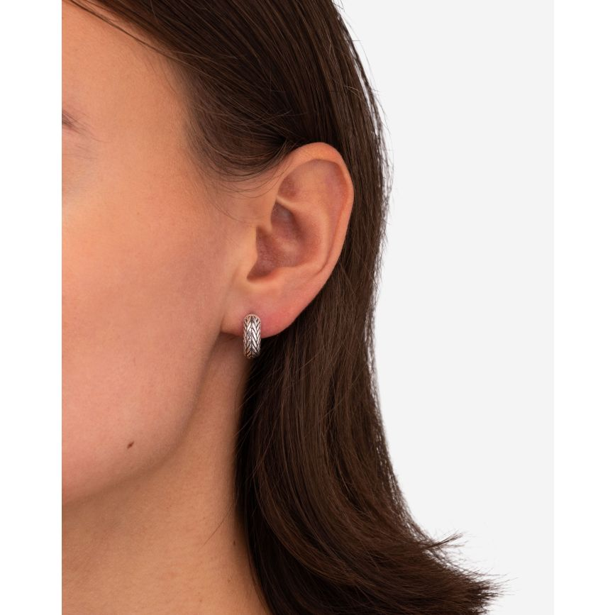 De Ellen small oorbellen zijn geïnspireerd op onze geliefde Ellen schakel. De iconische Ellen vlechttechniek straalt kracht en elegantie uit. Met passie en precisie vervaardigen onze bekwame zilversmeden deze stijlvolle ketting van gerecycled zilver, in Zuidoost-Azië. Verken ook de armbanden, kettingen en ringen uit de Ellen collectie en ontdek met welke sieraden je deze oorbellen het beste kunt combineren. Het veelzijdige en verfijnde ontwerp maakt het tot de perfecte accessoire voor iedereen en elke gelegenheid. De schakels van deze oorbellen staan symbool voor connectie. Met wie of wat verbind jij jezelf door dit sieraad te dragen?