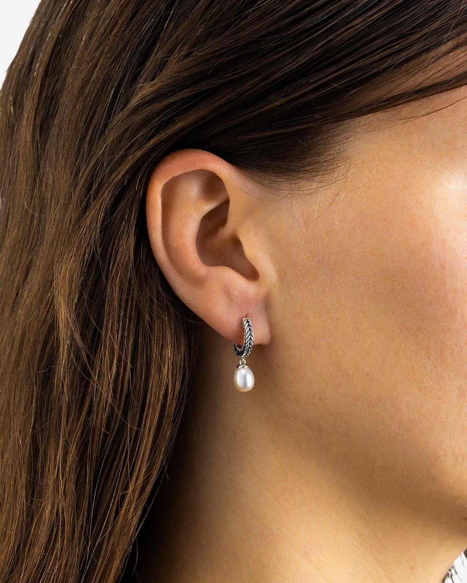 De Hoops Barbara Parel combineren tijdloze schoonheid met een gedurfd ontwerp. Met natuurlijke witte ovale zoetwaterparels voegen deze oorbellen een vleugje luxe toe aan de opvallende zilveren afwerking. De textuur op de oorbellen is geïnspireerd op het iconische Barbara-weefpatroon en creëert een boeiend contrast tussen het gedetailleerde ontwerp en de gladde, stralende parels. Gemaakt van hoogwaardig gerecycled 925 sterling zilver, bieden deze oorbellen zowel verfijning als duurzaamheid. Vier de schoonheid van contrast en vakmanschap met de Barbara Pearl Zilver Hoops, een perfecte mix van natuurlijke elegantie en iconisch design.