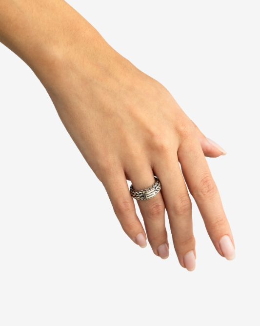 De Ellen familie is een van de subtielere en verfijnde schakels in onze Heritage collectie. De Ellen Small Ring is een prachtige ring met de kenmerken van de Ellen schakel in zich. Het is een elegante ring die je goed kunt combineren met andere Buddha to Buddha sieraden. Handgemaakt uit sterling zilver en tijdloos zoals bij alle Buddha to Buddha items.