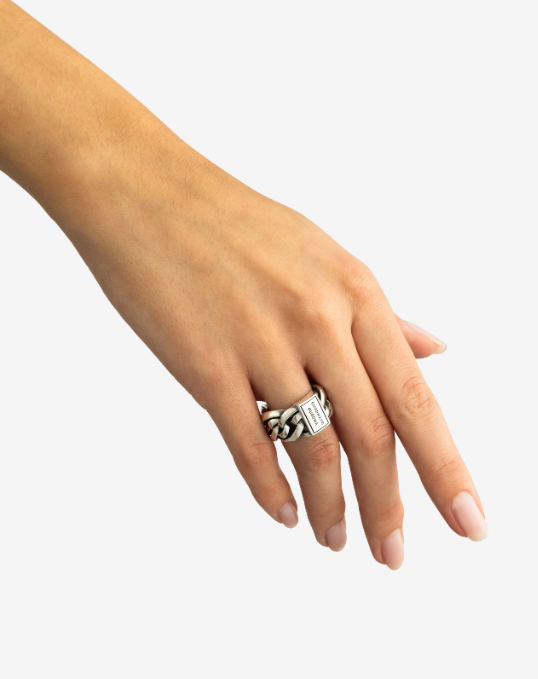 De Nathalie ring is een van de bekendste ringen uit de Heritage collectie op basis van de Nathalie schakel. De aparte dubbele schakel maakt deze sterling zilveren ring tot een echte blikvanger. Creëer een vlotte en stoere look met deze tijdloze en handgemaakte ring. De Nathalie Ring is groter dan de Nathalie Small Ring. Deze ring valt in de categorie brede ringen.