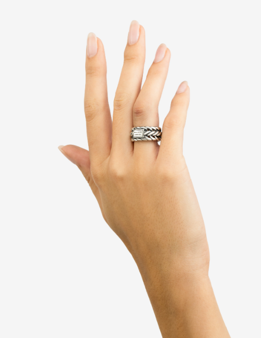 De Nurul Ring is een viering van verfijning en gedetailleerd vakmanschap. Deze sierlijke ring, met zijn unieke en ingewikkelde schakeldesign, laat de schoonheid in complexiteit op een prachtige manier zien. Elke Nurul schakel vertelt een verhaal van toewijding, precisie en de kunst van het handwerk. Gemaakt uit hoogwaardig gerecycled zilver, is de Nurul niet alleen een krachtig sieraad, maar ook een statement van duurzaamheid en kwaliteit. Ontworpen in Amsterdam en met liefde handgemaakt in Zuidoost-Azië. Draag het als een viering van jouw unieke stijl en de bijzondere momenten in het leven. Welke herinnering verzegel jij met deze zilveren ring?