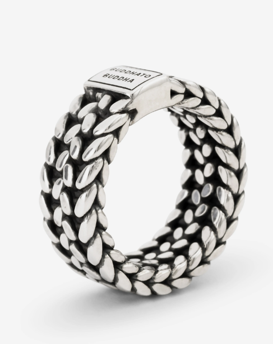 De Julius familie is een coole en trendy toevoeging aan onze bekende Heritage-collectie. De sterling zilveren ring is handgemaakt, unisex en tijdloos. Het gedetailleerde ontwerp is gebaseerd op traditionele Balinese weeftechnieken. Creëer een stoere look met deze tijdloze ring! De Julius familie bestaat uit twee zilveren armbanden, een manchet armband, een zegelring en deze stoere ring. Deze ring valt in de categorie brede ringen.