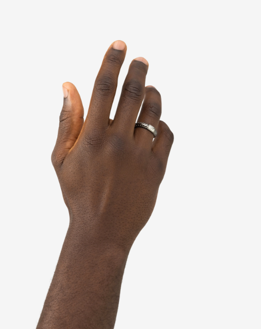 Het ontwerp van de Ben XS ring is aangepast met een unieke glanzende rhodium finishing en gepolijste zilveren details. Jouw levensstijl en de natuurlijke elementen bepalen de look van je sieraad in de loop van tijd en creëren een vintage en ruwe uitstraling die een persoonlijk statement is van jouw reis door het leven. Deze ring valt in de categorie smalle ringen. Let op! Deze unieke rhodium finish is zo ontwikkeld dat je sieraad een vintage look krijgt naarmate je het draagt. Zo ontwikkel je een eigen look, passend bij jouw levensstijl.