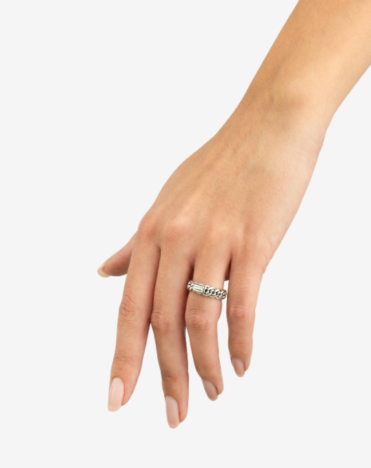 Ken je de populaire Nathalie-schakel? Op basis hiervan is nu ook de Nathalie XS-ring ontworpen. Deze sterling zilveren ring valt in de categorie ‘smalle ringen’ en is nog iets smaller dan de ‘Nathalie Small Ring’. Uitgevoerd met dubbele schakel, uiterst verfijnd en mooi gebalanceerd. Volledig met de hand gemaakt. Over eyecatchers gesproken…
