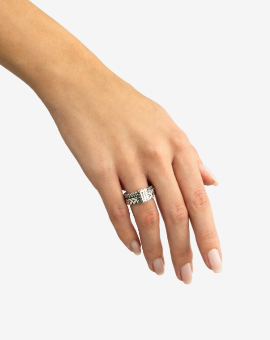 De Barbara Dubbel ring, een geweldige toevoeging aan de Barbara familie. De prachtige Barbara schakel komt twee keer terug in deze dubbele ring, één keer in een iets bredere variant en één keer in een subtielere variant. Alsof je twee ringen combineert! De tijdloze en handgemaakte zilveren ring maakt jouw outfit helemaal af. Deze ring valt binnen categorie brede ringen.