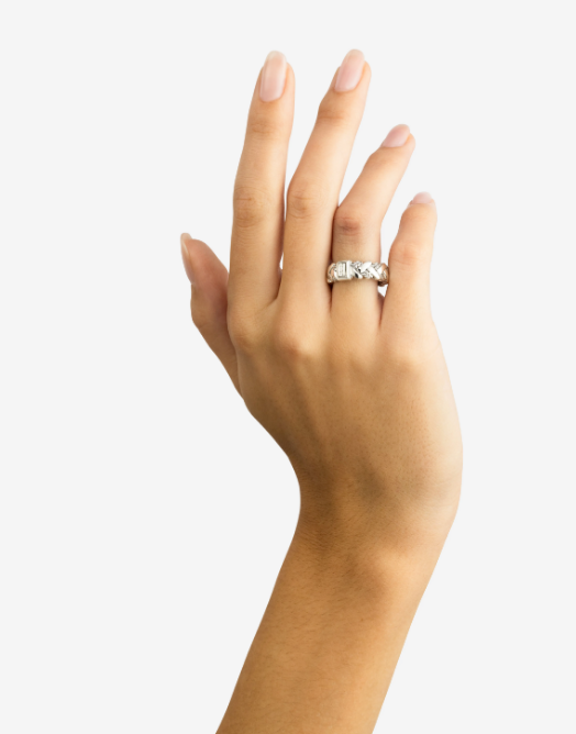 De George Texture Ring is een meesterwerk van gedetailleerd vakmanschap en innovatie. Deze ring, met zijn unieke textuur is geinspireerd op de de fijnste weeftechnieken van Azië. Het is een verbluffende uiting van de George schakel, maar dan met een extra dimensie van diepte en verfijning. Gemaakt met passie uit gerecycled zilver, is deze ring niet zomaar een sieraad, maar een statement van stijl en karakter. Ontworpen in Amsterdam en met precisie handgemaakt in Zuidoost-Azië, is de George Texture Ring een tijdloos sieraad dat generaties lang meegaat. Welke herinneringen zullen zich vormen rond jouw George Texture Ring?