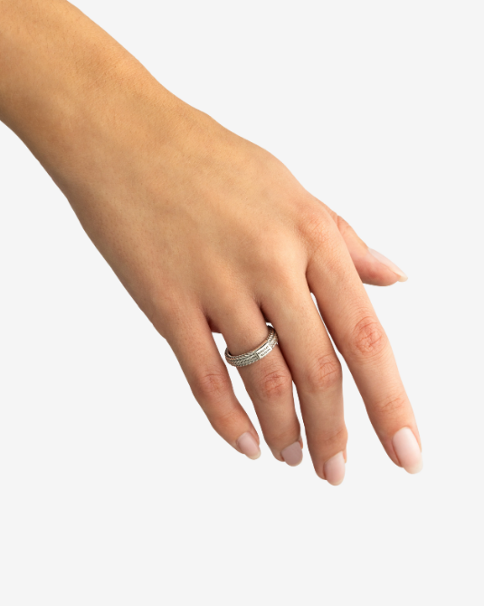 De Ellen collectie is een van de subtielere en verfijnde schakels in onze collectie. De Ellen Small ring is een prachtige ring die de iconische Ellen vlechttechniek laat zien. Met de hand gemaakt van premium gerecycled zilver. Het is een elegante ring die je goed kunt combineren met andere Buddha to Buddha sieraden. De Ellen Small ring is een kleinere en verfijndere versie van de populaire Ellen-ring. Wij vinden dat je alles in het leven moet vieren; vind jij dat ook?