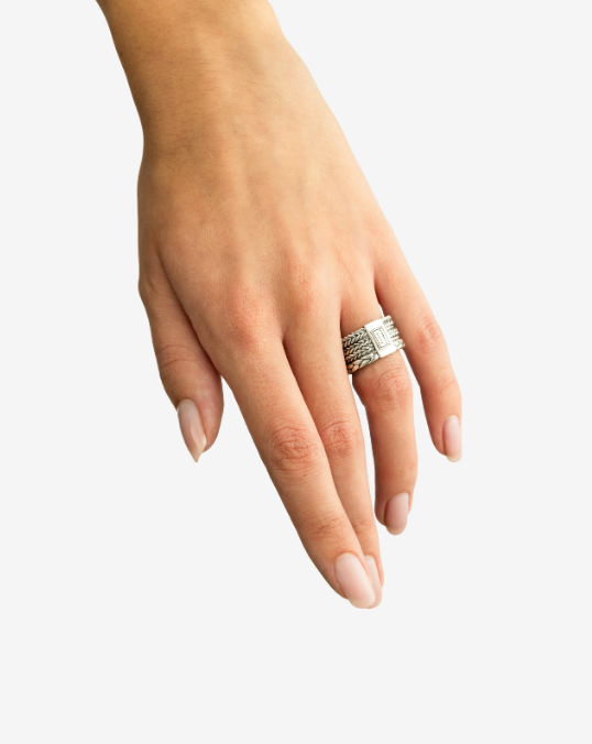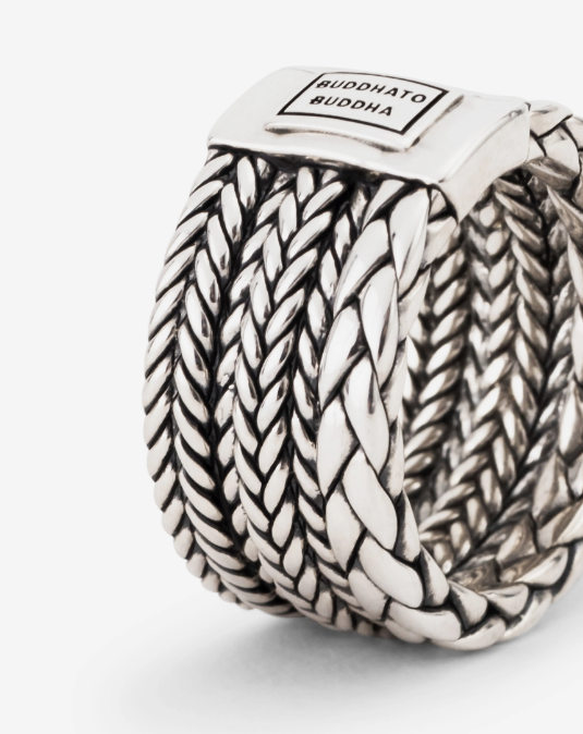 Deze ring maakt de Triple Mini collectie compleet! De populaire schakels van Barbara, Ellen en George worden gecombineerd tot één stijlvolle ring. Handgemaakt van sterling zilver, tijdloos en uniek!