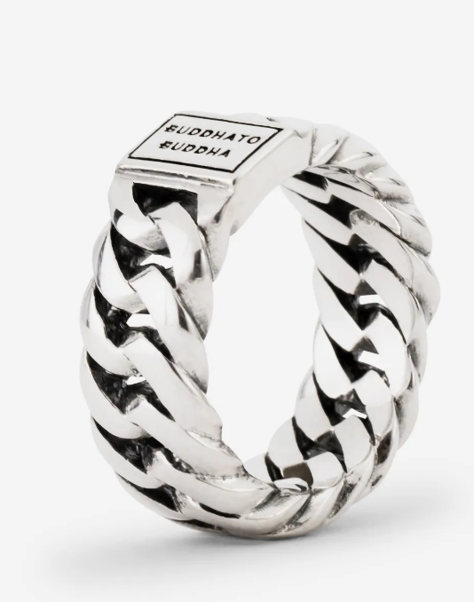 De Chain small ring is een waar icoon binnen de Chain-collectie en een meesterwerk op zich. Deze ringencollectie onderscheidt zich door zijn unieke schakels. De wereldberoemde gourmet-schakel is getransformeerd tot een stijlvolle en opvallende creatie van Buddha to Buddha. Dit tijdloze sieraad, met zorg met de hand vervaardigd uit gerecycled zilver, laat zich naadloos combineren met andere items uit de Chain-collectie. De Chain small ring is smaller dan de Chain Ring en valt in de categorie brede ringen. De schakel staat symbool voor verbinding. Met wie verbind jij je door het dragen van deze ring? Laat jouw verhaal versmelten met dit unieke sieraad en omarm de kracht van connectie.