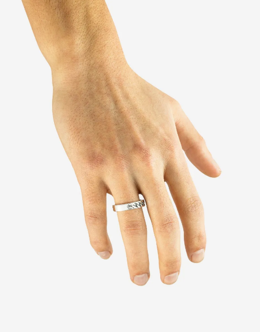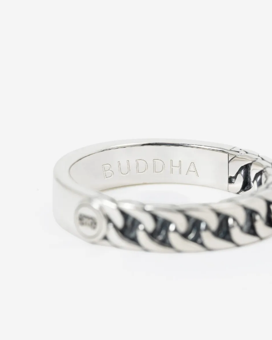 De Esther Small Dual Ring is vervaardigd uit gerecycled sterling zilver. Dankzij de combinatie van een gladde zijde en het geweven Esther-patroon is deze ring graveerbaar. Laat jouw persoonlijke verhaal versmelten met deze veelzijdige ring. Deze ring is kleiner dan de Esther Dual Ring, maar groter dan de Esther Mini Dual Ring, en daardoor perfect te combineren met andere sieraden uit de Esther-collectie van Buddha to Buddha. Ontworpen in Amsterdam en op duurzame wijze geproduceerd in Zuidoost-Azië. Wij geloven dat elk sieraad een eigen ziel heeft. Wat betekent dat voor jou?