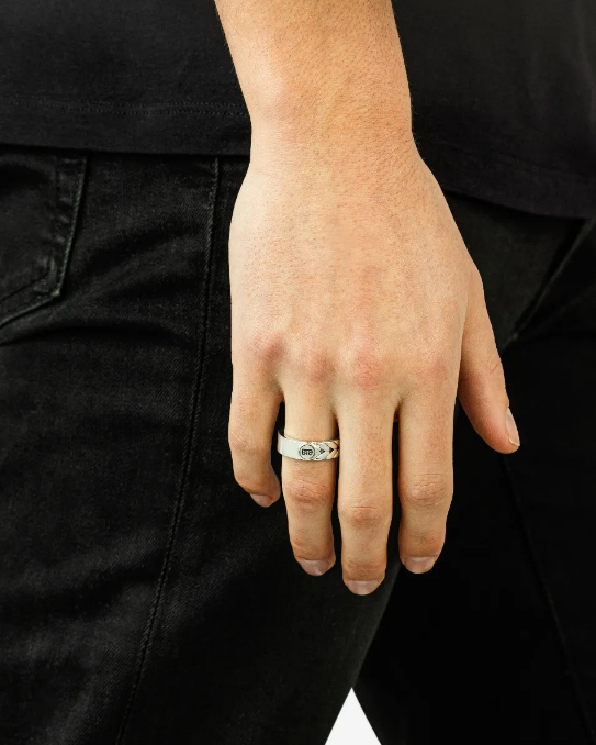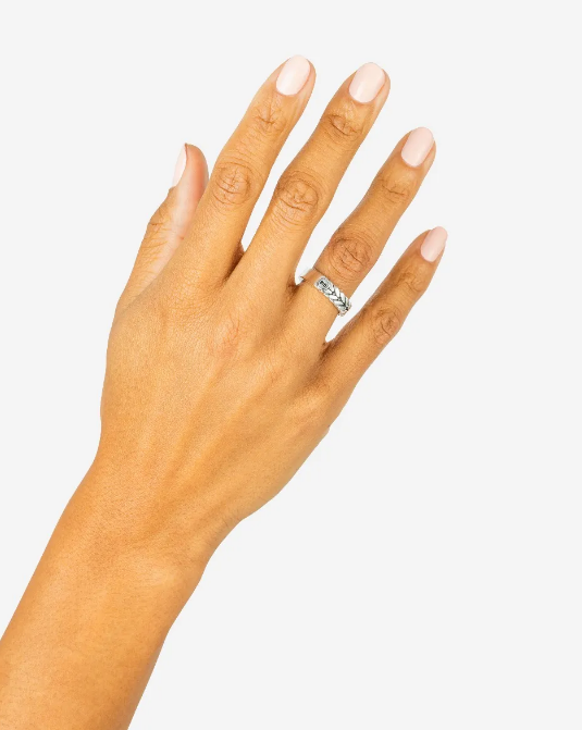 De Barbara Dual Ring is vervaardigd uit gerecycled sterling zilver en kenmerkt zich door een gladde zijde en een geweven, iconische Barbara textuur. Deze ring is perfect om jouw unieke verhaal te creëren, aangezien hij graveerbaar is. De Barbara Dual Ring is breder dan de Barbara Small Dual Ring. De diepte en elegantie van de Barbara weving maken deze ring tijdloos. Ontworpen in Amsterdam en duurzaam geproduceerd in Zuidoost-Azië. Wij geloven dat je alles in het leven moet vieren. Vind jij dat ook?