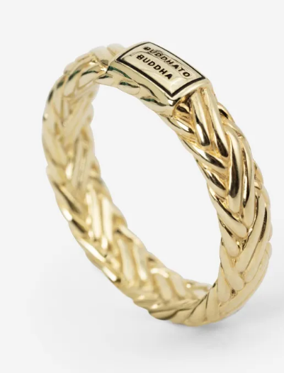 De Katja XS Ring, met zijn verfijnde gevlochten design, belichaamt puur vakmanschap. Geïnspireerd door de iconische Katja-schakel, is deze ring zowel een statement op zich als een tijdloze toevoeging aan je collectie. Ontworpen in Amsterdam en handgemaakt in Zuid-Oost Azië van gerecycled zilver met een premium goudlaag van 3.0 micron. De laag goud is gemiddeld 5 maal dikker dan reguliere gold plated items en gemaakt van 18-karaat goud. Deze ring is een harmonieuze combinatie met andere Buddha to Buddha sieraden. Welk verhaal vertel jij met deze Gold Plated ring?