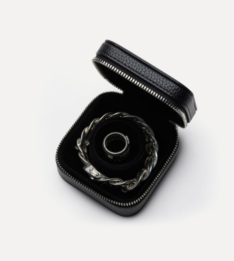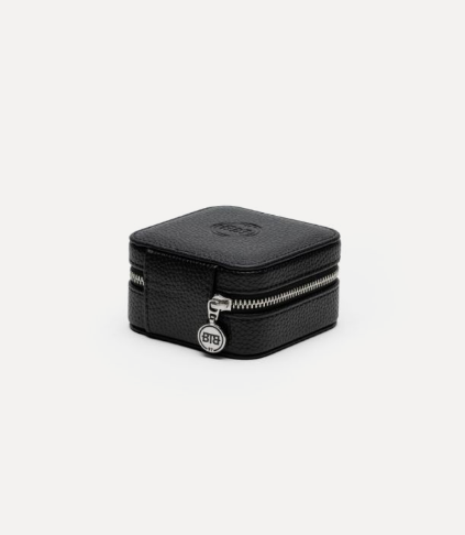 De Jewelry Travel Case Black Small is de perfecte compacte oplossing om je sieraden veilig en georganiseerd te bewaren tijdens het reizen. In het middencompartiment kun je ringen, oorbellen en hangers netjes opbergen, terwijl de ruimte eromheen ideaal is voor armbanden. De case is gemaakt van RCS-gecertificeerd gerecycled PU en heeft een zachte voering van GRS-gecertificeerd gerecycled polyester om je sieraden optimaal te beschermen. De duurzame sieradenetui is afgewerkt met een zilverkleurige BTB-ritssluiting en BUDDHATOBUDDHA logo’s die in reliëf zijn aangebracht.