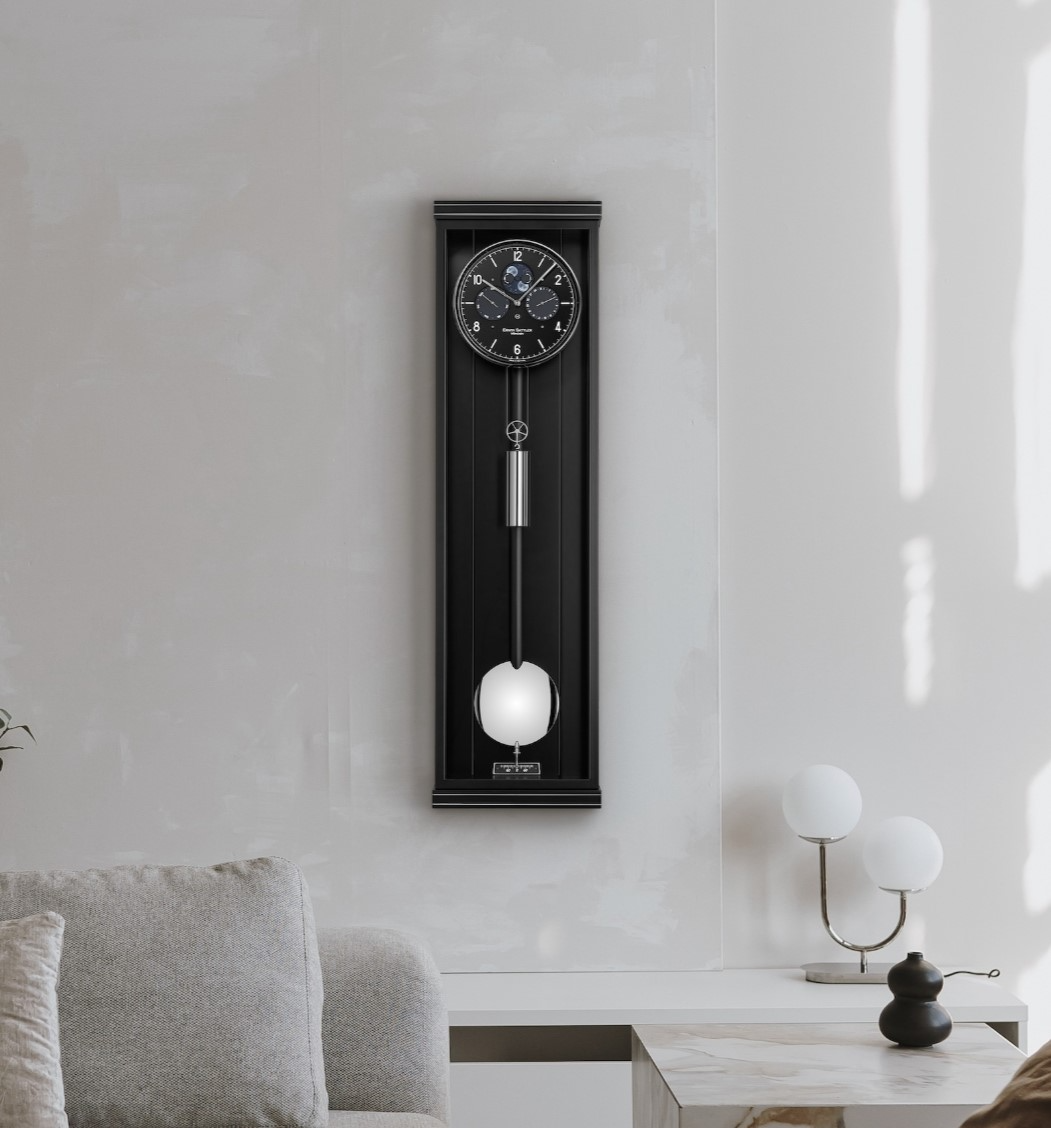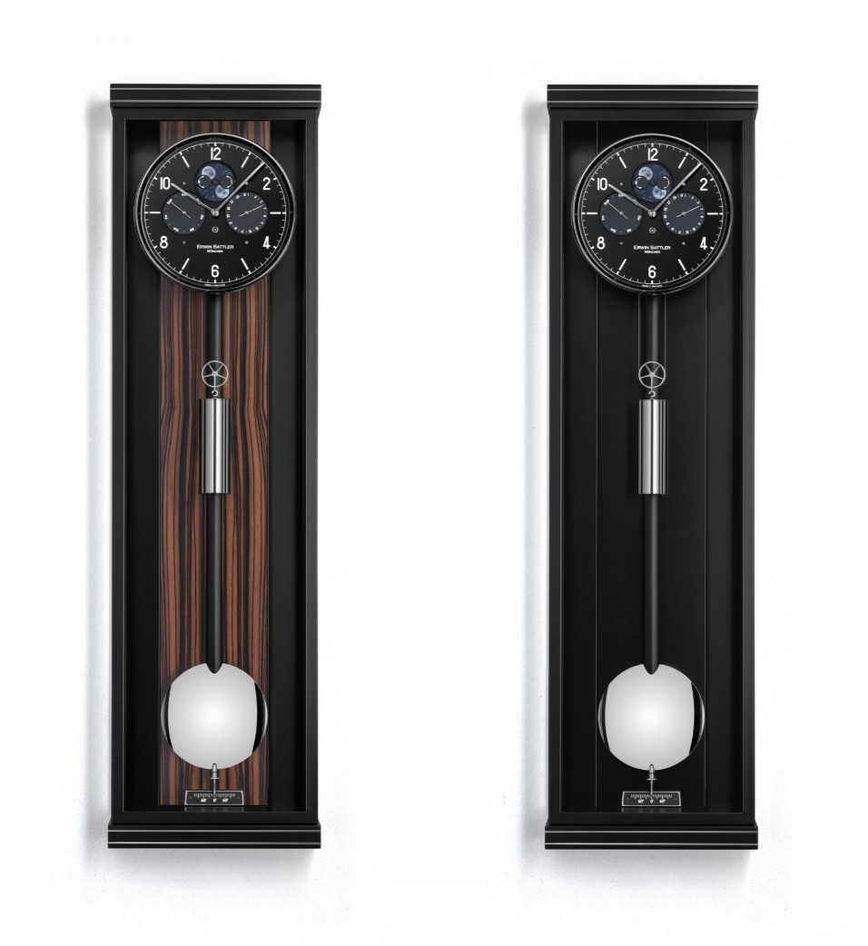 Met een zwarte of een witte volledig vernieuwde tweedelige wijzerplaat met een handbeschilderde maanstand en een dag en een datum aanduiding. 7 Robijnlagers en 4 precisie kogellagers. Slinger lens en Lunette massief vernikkelt. Kast in zwarte slijplak en metaal inleg in de boven en onder rand met  ontspiegeld mineraalglas. Ook leverbaar met een Makkasar rug wand Loopduur 30 dagen.