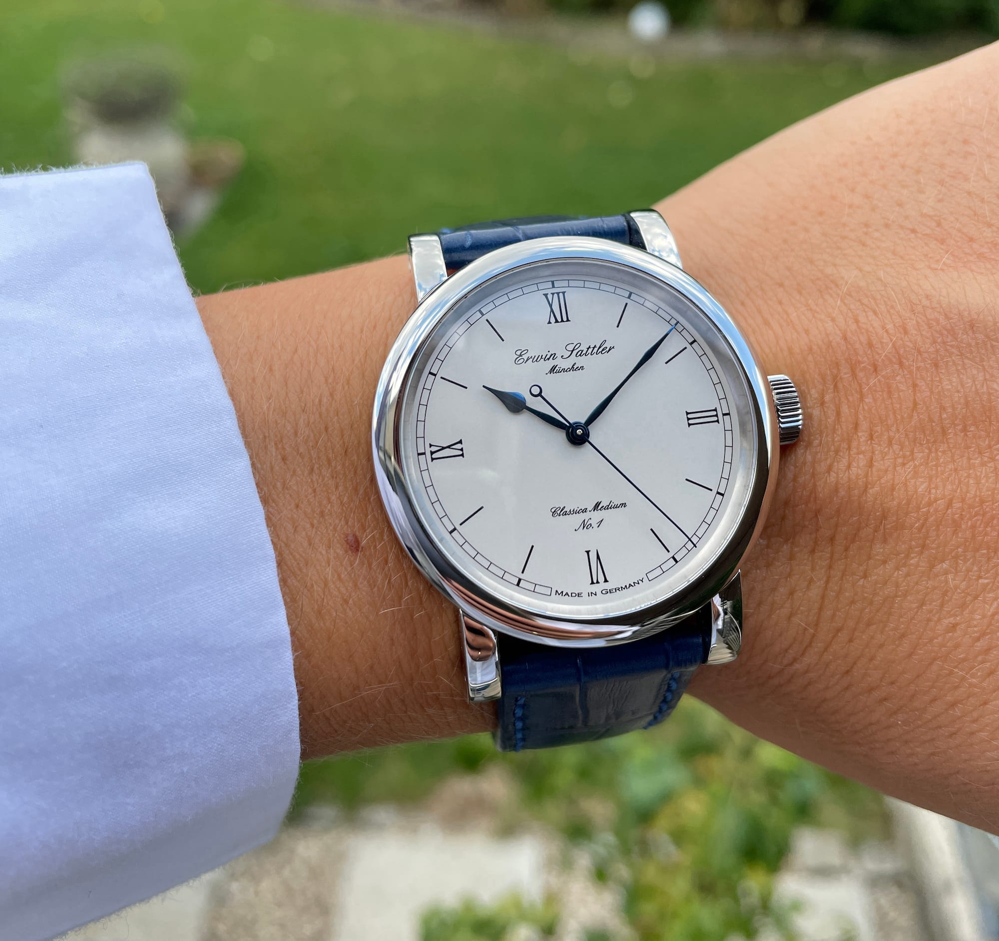 Gepolijste edelstalen kast 39 mm, 10,5 mm hoog. Ontspiegeld saffier glas ook aan de onderkant. 5 ATM waterdicht. Uurwerk, automaat kaliber STP 1-11. Gangreserve 44 uur. Hand gestikte lederen band in blauw of bruin met edelstalen klap sluiting met Sattler logo.  26 robijn lager stenen. Zilveren wijzerplaat genummerd. Geblauwd stalen wijzers. Laser gegraveerde gedecoreerde rotor.
