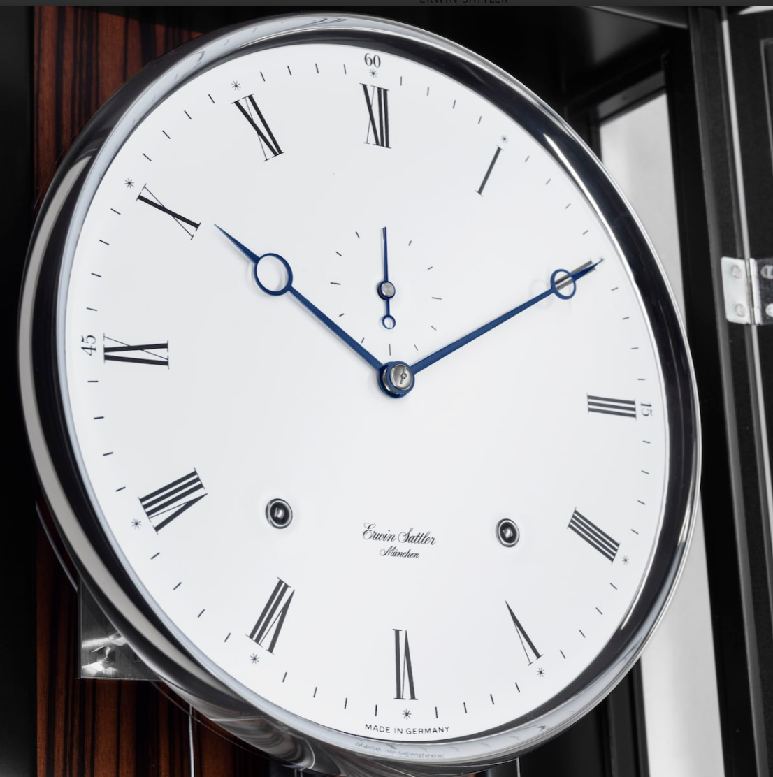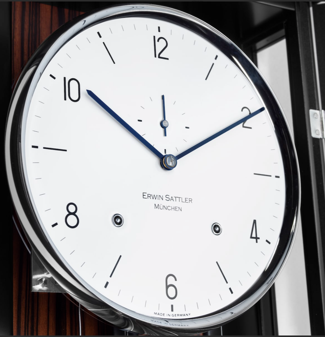 Zwart gelakte kast of zwart gelakte kast met Makasar achterwand. 98 cm hoog, 27,5 cm breed en 10,5 cm diep. Ontspiegeld mineraal glas. Uurwerk Sattler Kaliber 1515-4. Loopduur 30 dagen. 8 Precisie kogellagers en 15 Robijn lagers. Emaillen wijzerplaat naar keuze Romeins of Arabisch. Slagwerk op de hele en de halve uren op rondgong met repetitie.