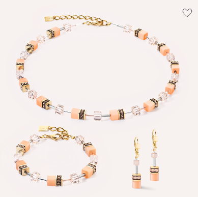 Trendkleur van het jaar: de GeoCUBE® Iconic Mono Gold ketting in Apricot Crush - het sieraad voor je nieuwe look, of het nu ton-sur-ton is of als contrasterend accent.