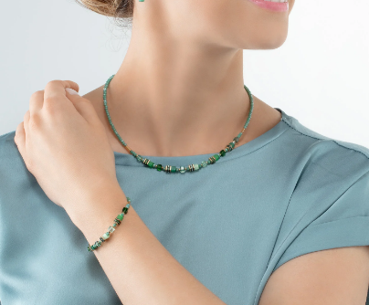 Armband in een Mini Cubes design. Past perfect bij de laatste mode met zijn trendy gouden en groene kleurstelling.