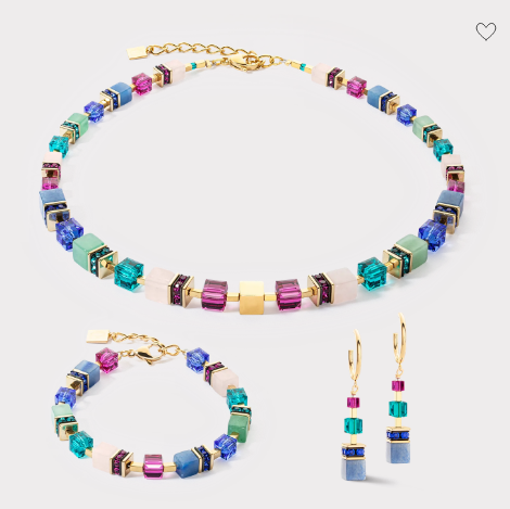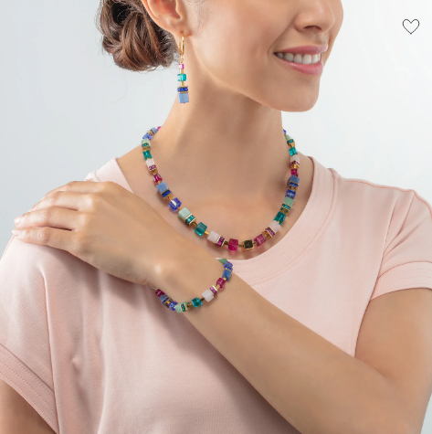 Deze gouden en veelkleurige GEOCUBE® Precious Statement armband maakt een stijlvolle toevoeging aan de ketting of oorbellen.