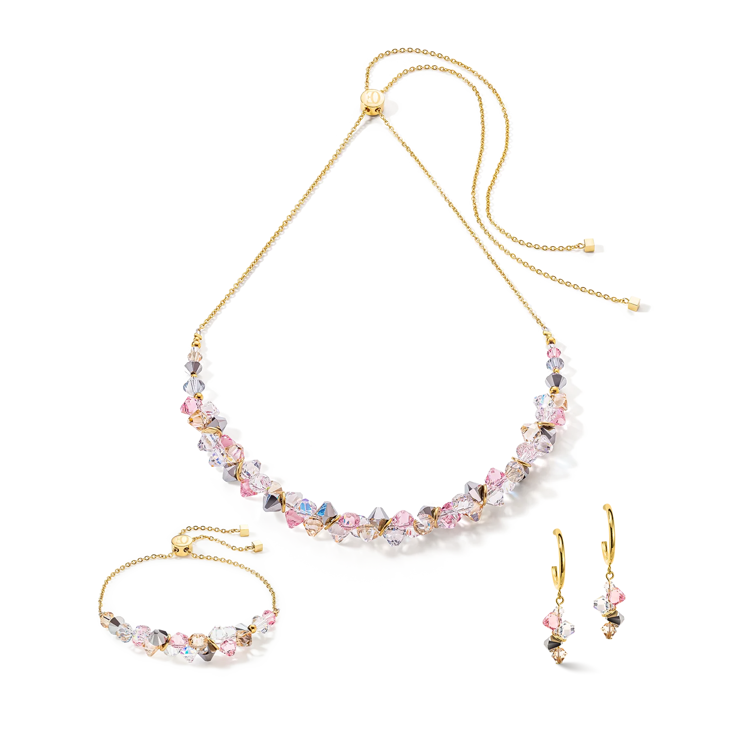 Dansende kristallen, roze. Met zijn verbluffende combinatie van sprankelende kristallen en goud geeft deze armband met een in lengte verstelbare schuifsluiting elke outfit een lift.