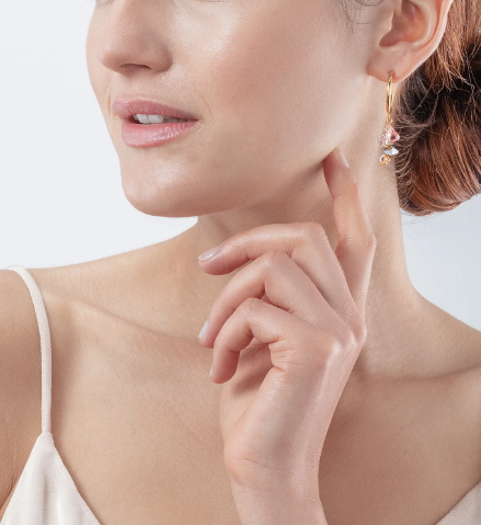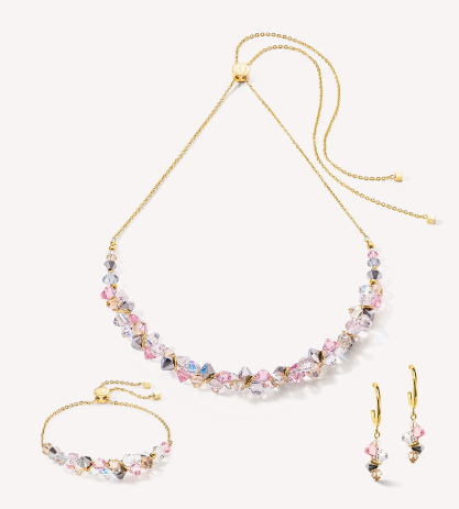 Dansende Kristallen, roze. Een verbluffende combinatie van sprankelende kristallen en gouden lussen om elke outfit een lift te geven.