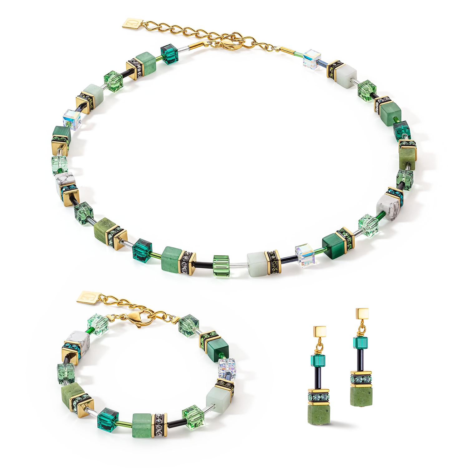 Glorieus groen, deze ongewone GeoCUBE® oorbellen zijn gemaakt van natuursteen en geven hun drager een gevoel van harmonie.