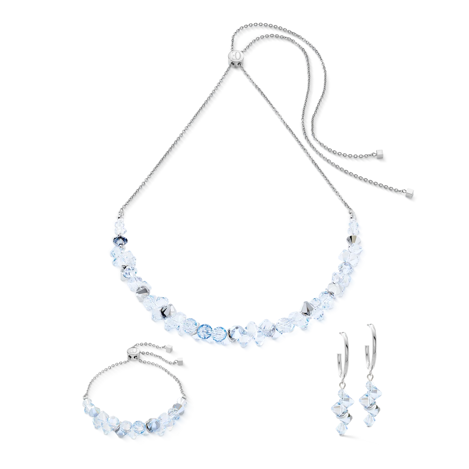 De roestvrijstalen ringen bieden een schone en moderne onderbouwing, die de helderheid en schittering van de kristallen versterkt. Hun cirkelvormige silhouet versterkt het gevoel van zachtheid en beweging, terwijl ze een verfijnde, eigentijdse esthetiek behouden.