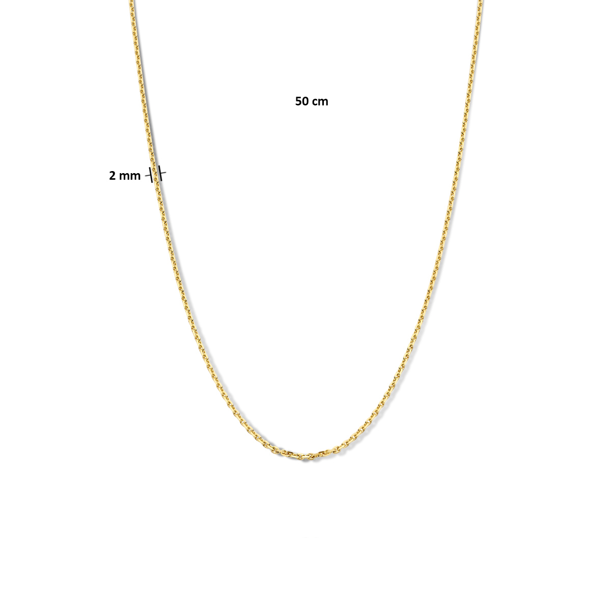 14k Geelgouden collier met een anker schakel van 2.0mm en een karabijn sluiting. Lengte 50 cm.