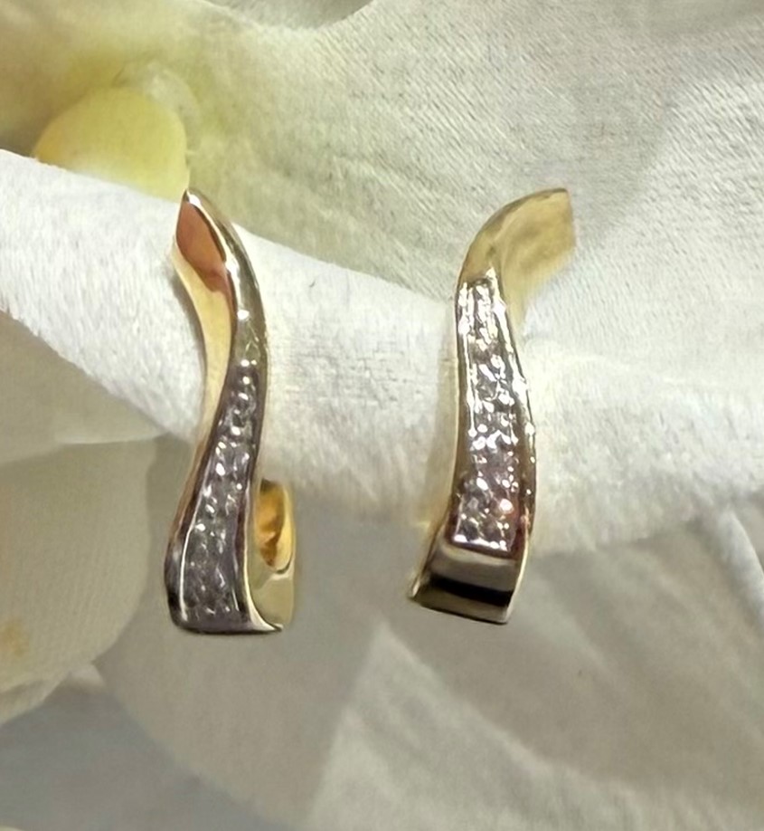 14 Karaat geel gouden oorringen met daarin pavé gezet 0.07 crt briljant H/SI-1.