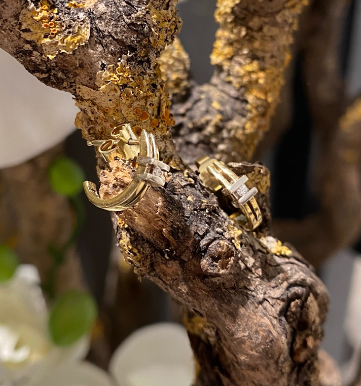 14 Karaat geel met witgouden oorstekers van R&C met 0.04 crt briljant G/SI.