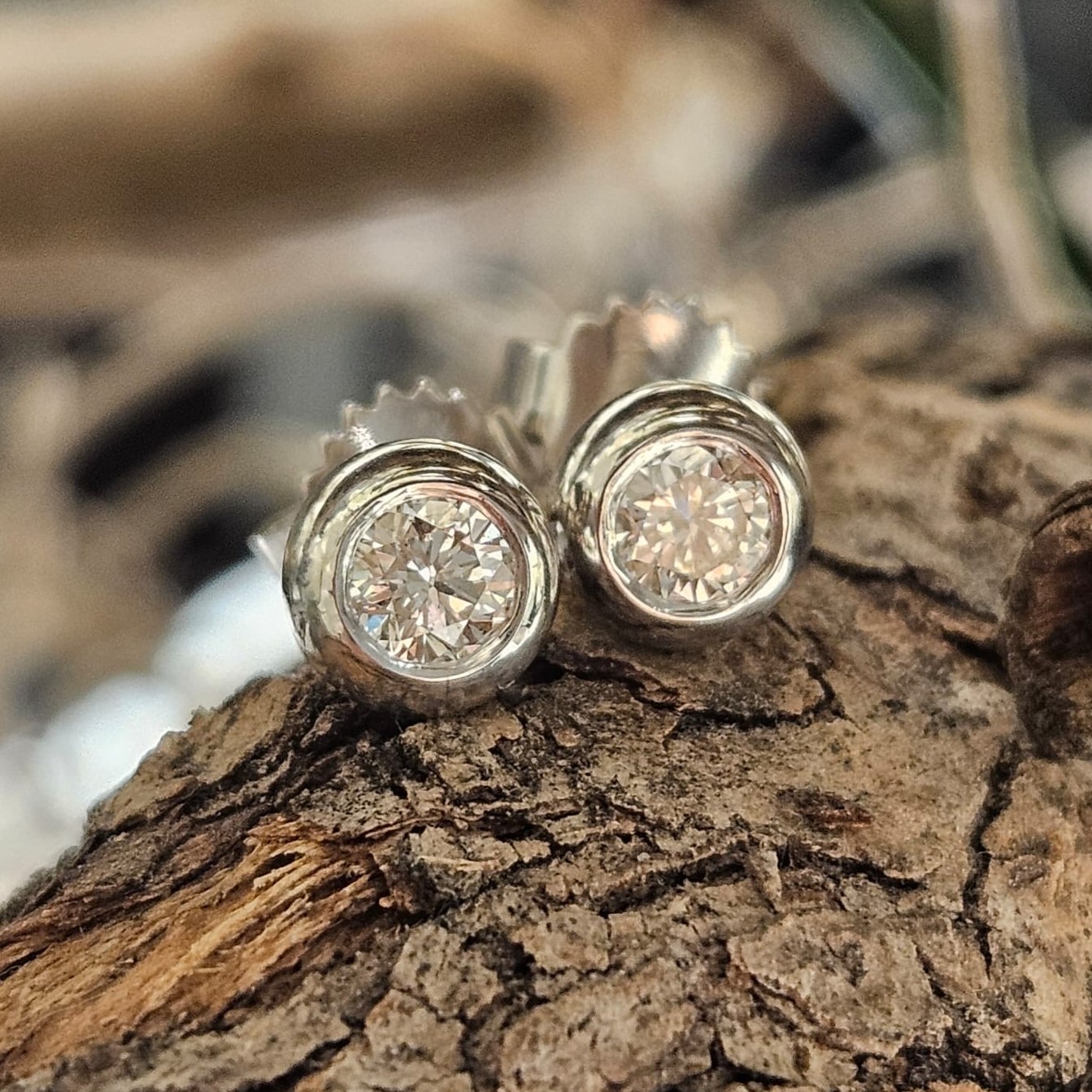 14 karaat wit gouden speciaal geproduceerde oorstekers. Met briljant in een witgouden Donut zetting met steker en pouchette. Briljant  2x 0.16 crt. VS1-TW.