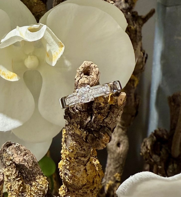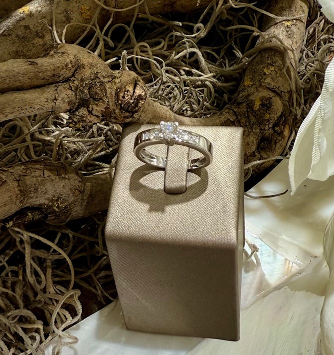 14 Karaat witgouden solitair ring met briljant. Middensteen 0.40 crt  totaal 0.50 crt G/VVS1.