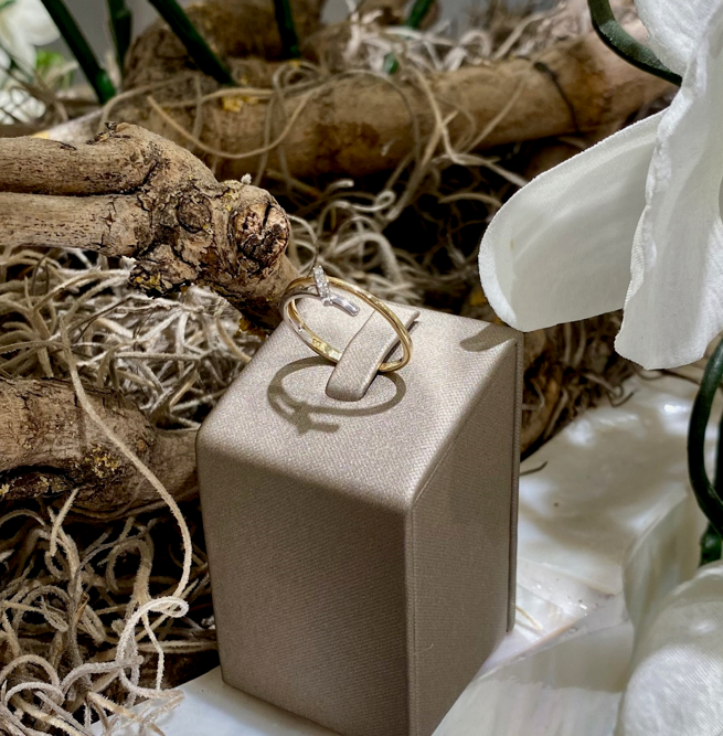 14 Karaat geel met witgouden fijne dames slagring met 0.03 crt briljant H/SI-1.